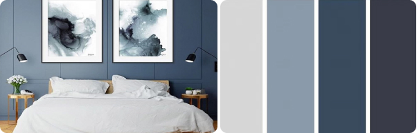 Есть также прекрасные примеры, когда синий становится ведущим цветом в интерьере - например насыщенный глубокий цвет стен. Сегодня качество и палитра красок позволяют довольно смело экспериментировать. Так например все больше клиентов FINNTELLA открывает для себя удивительно глубокий и красивый оттенок KESKIYÖ. В сочетании со светлой мебелью и декором он становится просто неотразим!